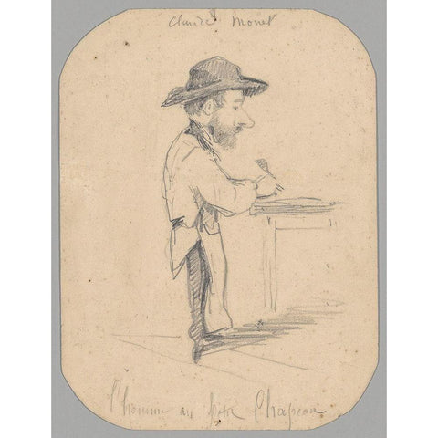 Caricature of a Man in the Small Hat Black Modern Wood Framed Art Print with Double Matting by Monet, Claude