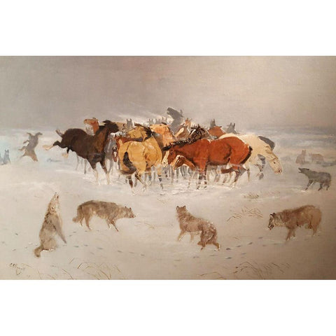 Flying hoofs Black Modern Wood Framed Art Print with Double Matting by Russell, Charles Marion