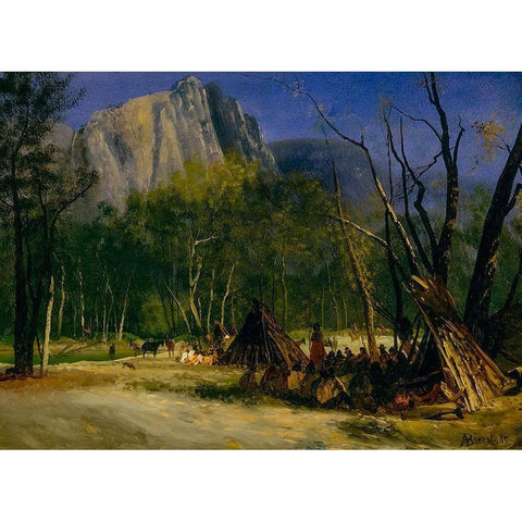 Indians in Council, California Black Modern Wood Framed Art Print with Double Matting by Bierstadt, Albert