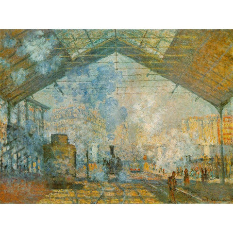 La Gare St. Lazare 1877 Black Modern Wood Framed Art Print with Double Matting by Monet, Claude