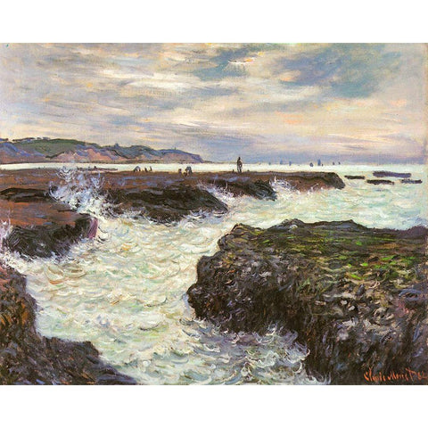 The Rocks at Pourvillle 1882 Black Modern Wood Framed Art Print with Double Matting by Monet, Claude