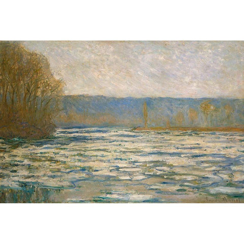 Ice breaking up on the Seine near Bennecourt 1893 Black Modern Wood Framed Art Print with Double Matting by Monet, Claude