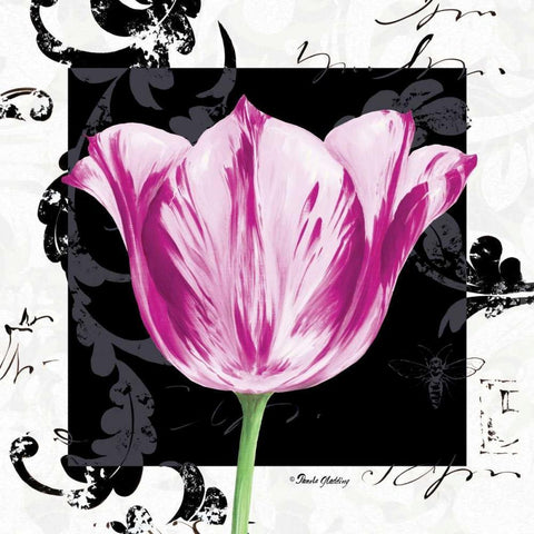 Damask Tulip I Gold Ornate Wood Framed Art Print with Double Matting by Gladding, Pamela