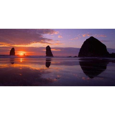 Cannon Beach II Gold Ornate Wood Framed Art Print with Double Matting by Leahy, Ike