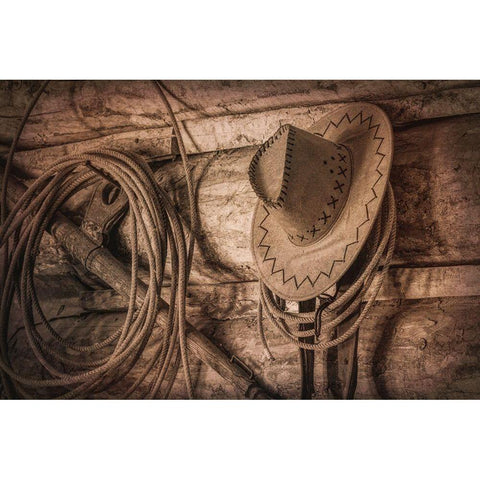 Cowboy Hat and Rope Gold Ornate Wood Framed Art Print with Double Matting by Mahan, Kathy