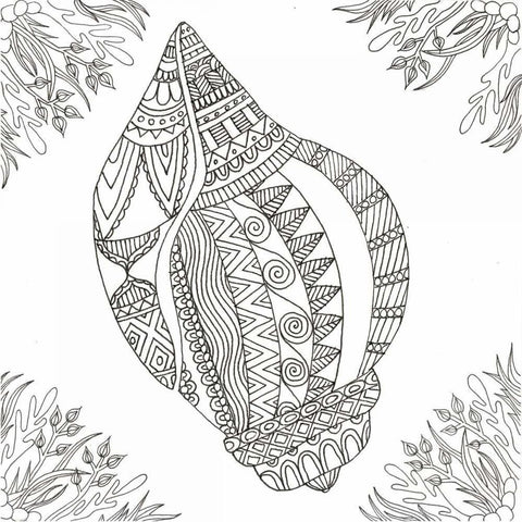 Seashell Within Weeds Gold Ornate Wood Framed Art Print with Double Matting by Varacek, Pam