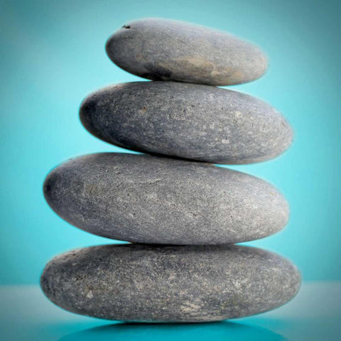 Stacking Stones 2 Teal Gold Ornate Wood Framed Art Print with Double Matting by De Carvalho, Sandro