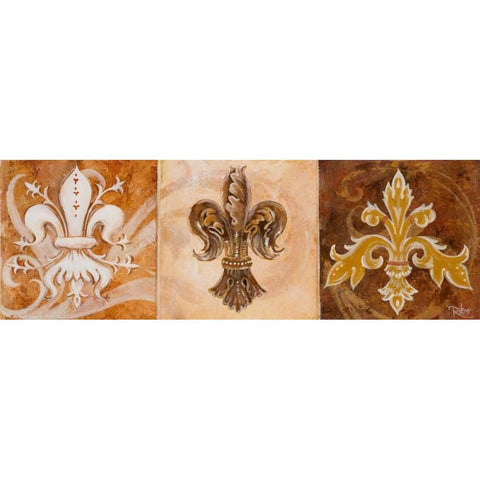 Fleur de Lis Trio Gold Ornate Wood Framed Art Print with Double Matting by Riker, Thomas