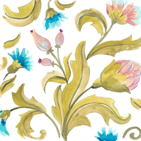 Abbey Floral Tiles IX Gold Ornate Wood Framed Art Print with Double Matting by Vess, June Erica