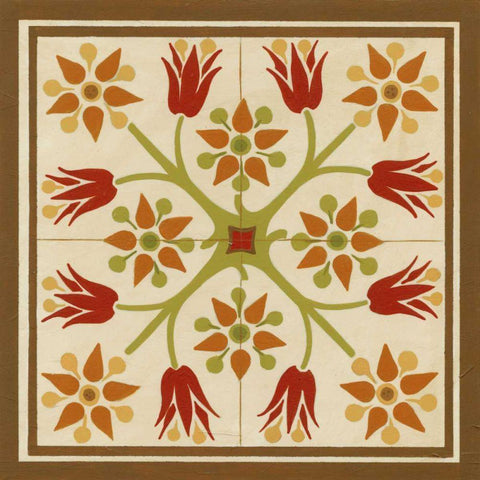 Floral Folk Tile II Gold Ornate Wood Framed Art Print with Double Matting by Vess, June Erica