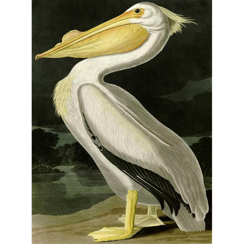 American White Pelican Gold Ornate Wood Framed Art Print with Double Matting by Audubon, John James