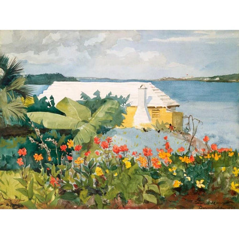 Flower Garden and Bungalow, Bermuda Gold Ornate Wood Framed Art Print with Double Matting by Homer, Winslow