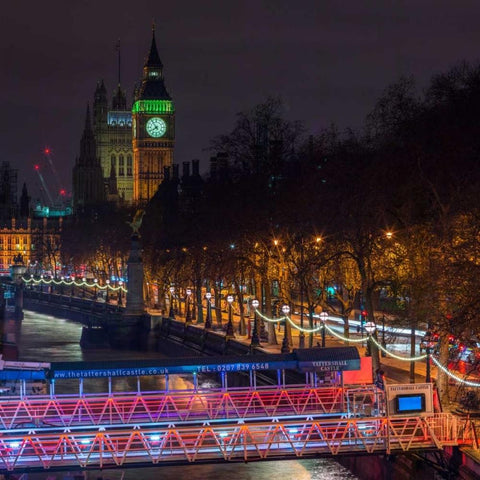 Evening view of Big Ben, London, UK Gold Ornate Wood Framed Art Print with Double Matting by Frank, Assaf
