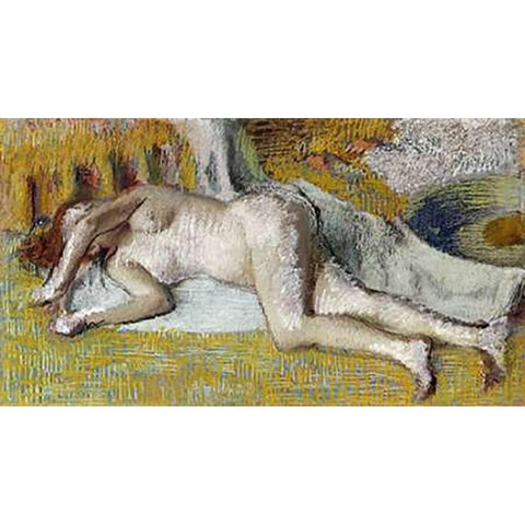 After The Bath Gold Ornate Wood Framed Art Print with Double Matting by Degas, Edgar