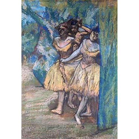 Three Dancers, With a Backdrop of Trees and Rocks Gold Ornate Wood Framed Art Print with Double Matting by Degas, Edgar