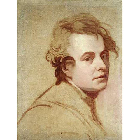 Portrait of The Artist Gold Ornate Wood Framed Art Print with Double Matting by Romney, George
