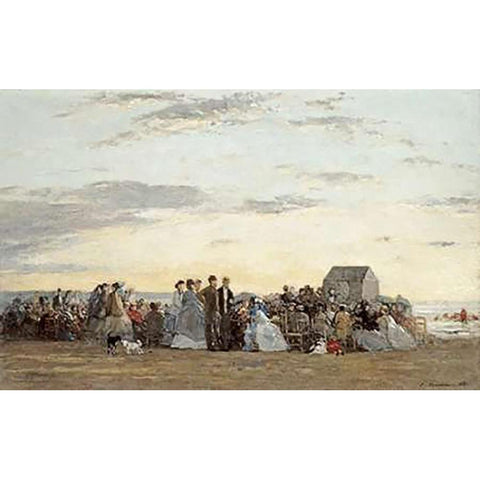 Beach Scene Gold Ornate Wood Framed Art Print with Double Matting by Boudin, Eugene