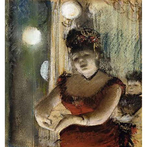 Singer In a Cafe Gold Ornate Wood Framed Art Print with Double Matting by Degas, Edgar