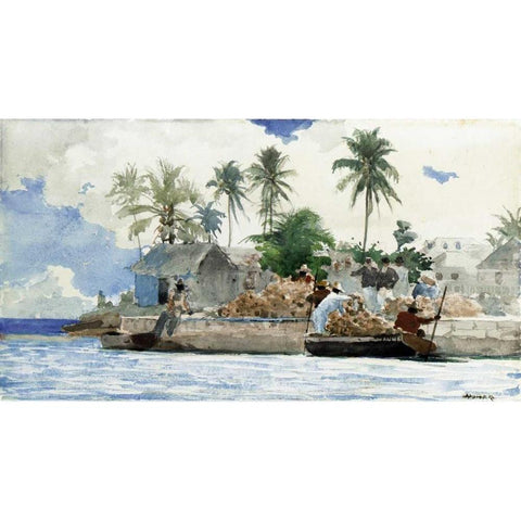 Sponge Fishermen, Bahamas Gold Ornate Wood Framed Art Print with Double Matting by Homer, Winslow