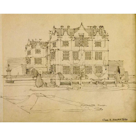 Somerset, Montacute House, 1895 Gold Ornate Wood Framed Art Print with Double Matting by Mackintosh, Charles Rennie