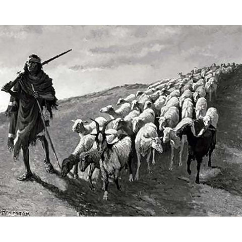 Navajo Sheepherder Gold Ornate Wood Framed Art Print with Double Matting by Remington, Frederic