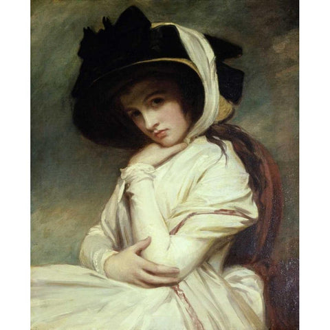 Lady Hamilton in a Straw Hat Gold Ornate Wood Framed Art Print with Double Matting by Romney, George