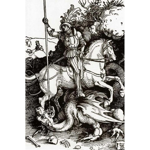 St George Gold Ornate Wood Framed Art Print with Double Matting by Durer, Albrecht