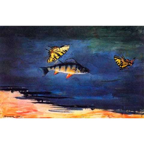 Fish And Butterflies Gold Ornate Wood Framed Art Print with Double Matting by Homer, Winslow