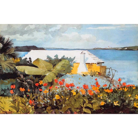 Flower Garden And Bungalow Bermuda Gold Ornate Wood Framed Art Print with Double Matting by Homer, Winslow
