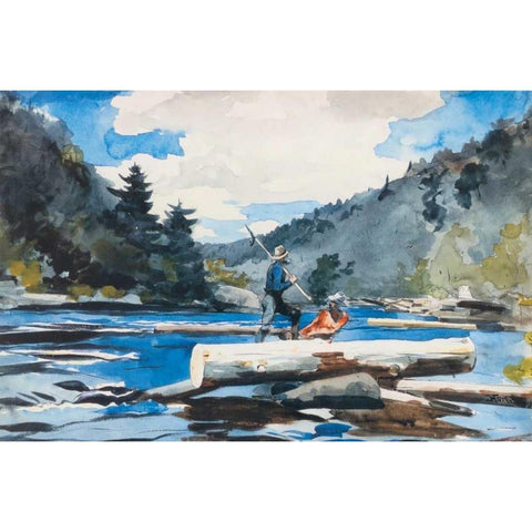 Hudson River Logging Gold Ornate Wood Framed Art Print with Double Matting by Homer, Winslow