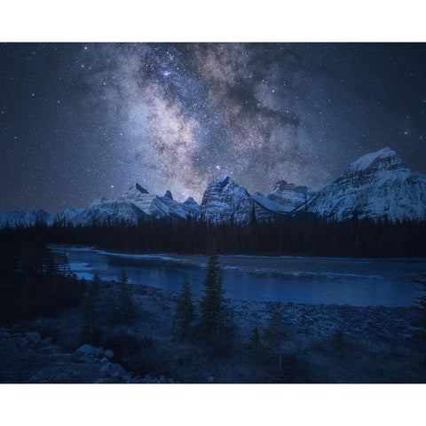 Milky Way over Mountains Gold Ornate Wood Framed Art Print with Double Matting by F. Turienzo, Carlos