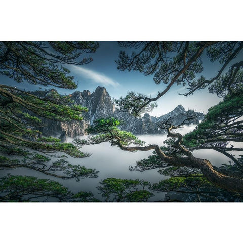 Strange Pine Tree In Yellow Mountain Gold Ornate Wood Framed Art Print with Double Matting by Ye, Ningyun
