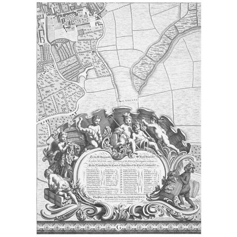 Roque Sectional map of London 1748 Gold Ornate Wood Framed Art Print with Double Matting by Roque, John