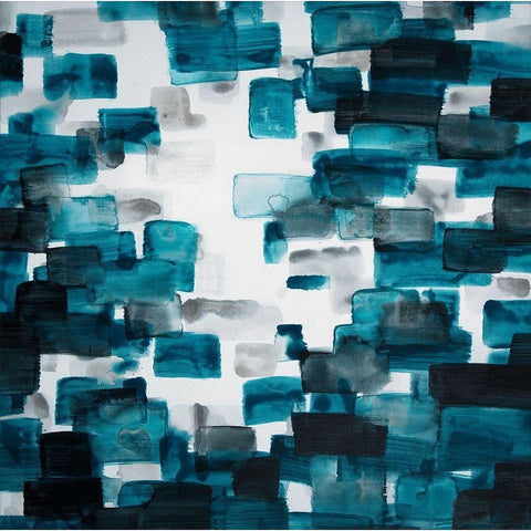 TURQUOISE AND GRAY SHAPES Gold Ornate Wood Framed Art Print with Double Matting by Atelier B Art Studio