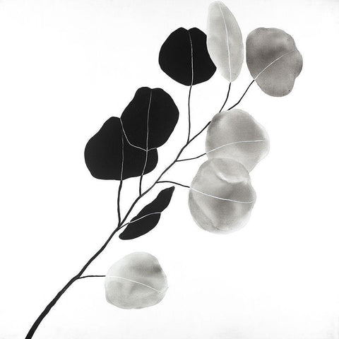Grayscale Branch with Round Shape Leaves Gold Ornate Wood Framed Art Print with Double Matting by Atelier B Art Studio
