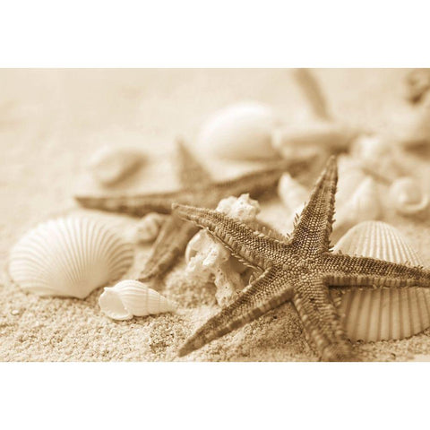 Starfish and Seashells Gold Ornate Wood Framed Art Print with Double Matting by Anonymous