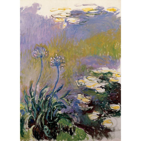 Les agapanthes Gold Ornate Wood Framed Art Print with Double Matting by Monet, Claude