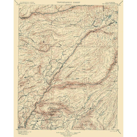 Big Trees California Quad - USGS 1901 Gold Ornate Wood Framed Art Print with Double Matting by USGS