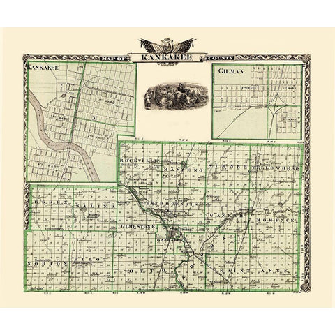 Kankakee Illinois Landowner - Warner 1876 Gold Ornate Wood Framed Art Print with Double Matting by Warner
