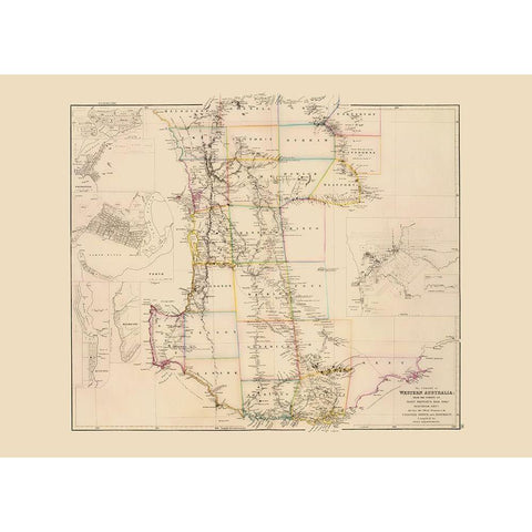 Australia Western Colony - Arrowsmith 1844 Gold Ornate Wood Framed Art Print with Double Matting by Arrowsmith