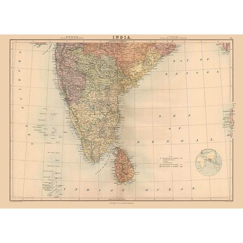 India Sri Lanka - Black 1867 Gold Ornate Wood Framed Art Print with Double Matting by Black