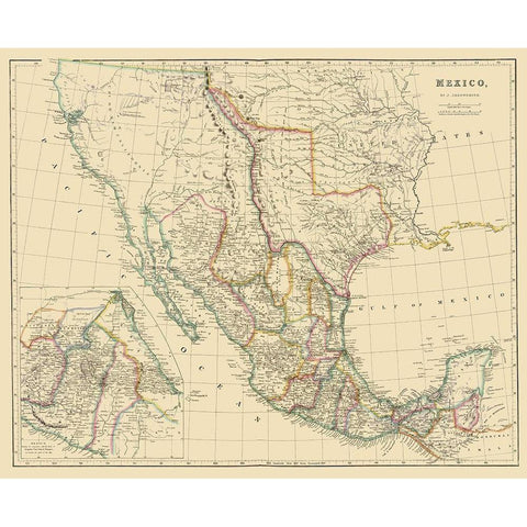 Mexico - Arrowsmith 1844 Gold Ornate Wood Framed Art Print with Double Matting by Arrowsmith