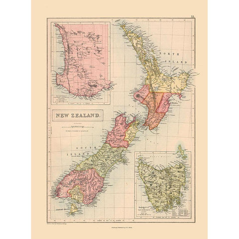 Oceania New Zealand - Black 1867 Gold Ornate Wood Framed Art Print with Double Matting by Black