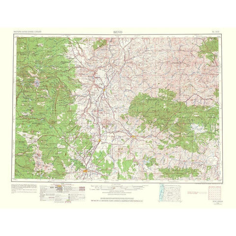 Bend Oregon Quad - USGS 1964 Gold Ornate Wood Framed Art Print with Double Matting by USGS