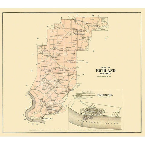 Richland Pennsylvania Landowner - Beers 1865 Gold Ornate Wood Framed Art Print with Double Matting by Beers