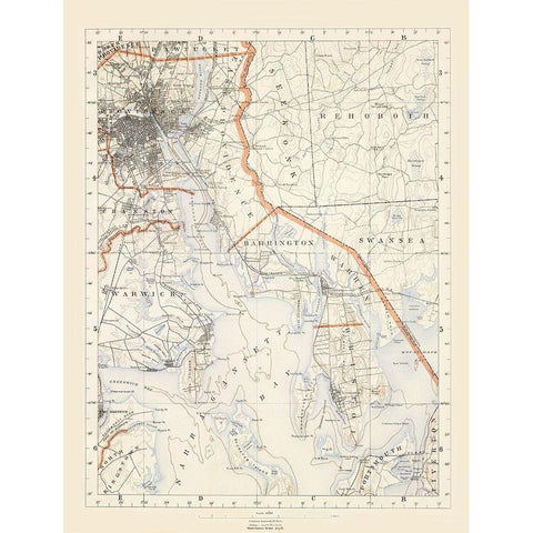 Rhode Island 3 of 10 Sheet - USGS 1891 Gold Ornate Wood Framed Art Print with Double Matting by USGS