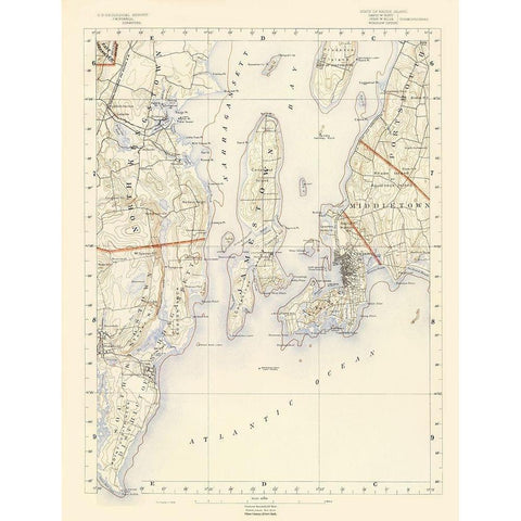 Rhode Island 7 of 10 Sheet - USGS 1891 Gold Ornate Wood Framed Art Print with Double Matting by USGS