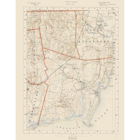 Rhode Island 8 of 10 Sheet - USGS 1891 Gold Ornate Wood Framed Art Print with Double Matting by USGS