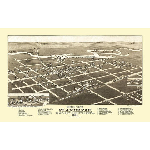 Flandreau South Dakota - Stoner 1883 Gold Ornate Wood Framed Art Print with Double Matting by Stoner