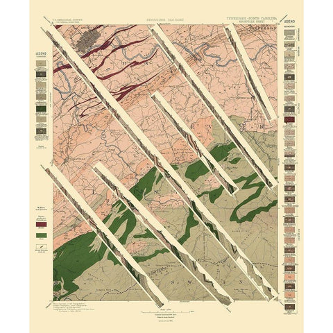 Knoxville Tennessee North Carolina Sheet Gold Ornate Wood Framed Art Print with Double Matting by USGS